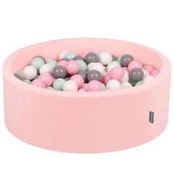 KiddyMoon Suchy basen okrągły z piłeczkami 7cm Zabawka basen piankowy, różowy: biały-szary-mięta-pudrowy róż