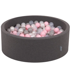 KiddyMoon Suchy basen okrągły z piłeczkami 7cm Zabawka basen piankowy, ciemnoszary: perła-szary-transparent-pudrowy róż