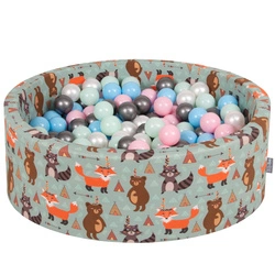 KiddyMoon Suchy basen okrągły z piłeczkami 7cm Zabawka basen piankowy, liski-zielony: pomarańcz-szary-biały