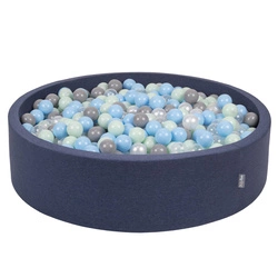 KiddyMoon Suchy basen okrągły z piłeczkami 7cm 120x30 Zabawka basen piankowy, granatowy: perła-szary-transparent-babyblue-mięta