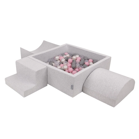 KiddyMoon Piankowy plac zabaw PPZP-KW30D-125 z piłeczkami Zabawka plac zabaw, jasnoszary: biały-szary-pudrowy róż