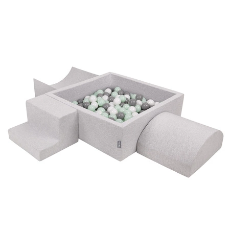 KiddyMoon Piankowy plac zabaw PPZP-KW30D-124 z piłeczkami Zabawka plac zabaw, jasnoszary: biały-szary-mięta