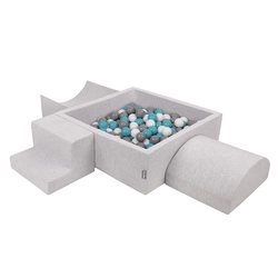 KiddyMoon Piankowy plac zabaw PPZP-KW30D-134 z piłeczkami Zabawka plac zabaw, jasnoszary: szary-biały-turkus
