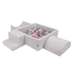 KiddyMoon Piankowy plac zabaw PPZP-KW30D-115 z piłeczkami Zabawka plac zabaw, jasnoszary: biały-szary-pudrowy róż