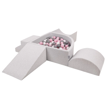 KiddyMoon Piankowy plac zabaw PPZP-TR30D-124 z piłeczkami Zabawka plac zabaw, jasnoszary: biały-szary-pudrowy róż