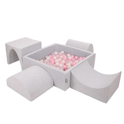 KiddyMoon Piankowy plac zabaw PPZP-KW30D-124 z piłeczkami Zabawka plac zabaw, jasnoszary: biały-szary-pudrowy róż