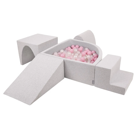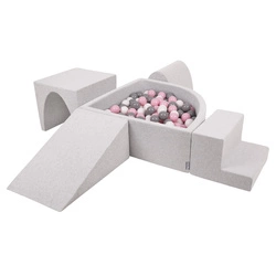 KiddyMoon Piankowy plac zabaw PPZP-OK30D-114 z piłeczkami Zabawka plac zabaw, jasnoszary: biały-szary-pudrowy róż
