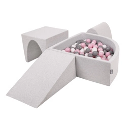 KiddyMoon Piankowy plac zabaw PPZP-TR30D-124 z piłeczkami Zabawka plac zabaw, jasnoszary: biały-szary-pudrowy róż