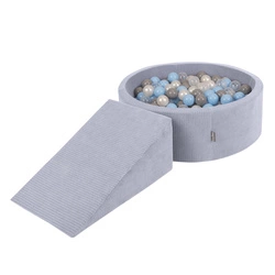 KiddyMoon Piankowy plac zabaw PPZP-KW30D-125 z piłeczkami Zabawka plac zabaw, jasnoszary: perła-szary-transparent-babyblue-mięta