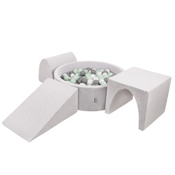 KiddyMoon Piankowy plac zabaw PPZP-OK30D-135 z piłeczkami Zabawka plac zabaw, jasnoszary: biały-szary-mięta