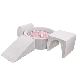 KiddyMoon Piankowy plac zabaw PPZP-OK30D-122 z piłeczkami Zabawka plac zabaw, jasnoszary: biały-szary-pudrowy róż