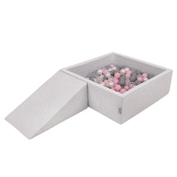 KiddyMoon Piankowy plac zabaw PPZP-KW30D-125 z piłeczkami Zabawka plac zabaw, jasnoszary: perła-szary-transparent-pudrowy róż
