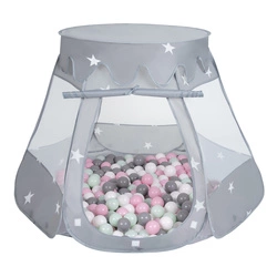 Namiot zamek NZ-100X z piłeczkami 6cm Zabawka namiot dla dzieci, szary: biały-szary-mięta-pudrowy róż