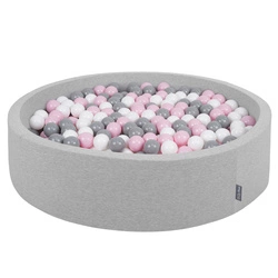 KiddyMoon Suchy basen okrągły z piłeczkami 7cm 120x30 Zabawka basen piankowy, jasnoszary: biały-szary-pudrowy róż