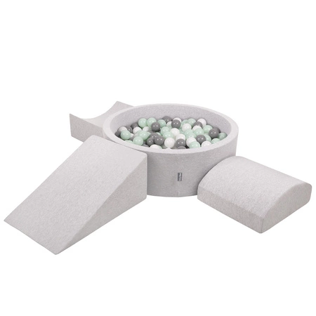 KiddyMoon Piankowy plac zabaw PPZP-OK30D-114 z piłeczkami Zabawka plac zabaw, jasnoszary: biały-szary-mięta