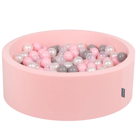 KiddyMoon Suchy basen okrągły z piłeczkami 7cm Zabawka basen piankowy, różowy: perła-szary-transparent-pudrowy róż