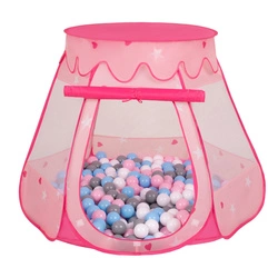 Namiot zamek NZ-100X z piłeczkami 6cm Zabawka namiot dla dzieci, różowy: biały-szary-babyblue-pudrowy róż