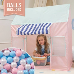 Domek do zabawy PH-300X z piłeczkami 6cm Zabawka namiot dla dzieci, różowo-miętowy: babyblue-pudrowy róż-perła