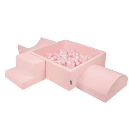 KiddyMoon Piankowy plac zabaw PPZP-KW30D-122 z piłeczkami Zabawka plac zabaw, różowy: pudrowy róż-perła-transparent