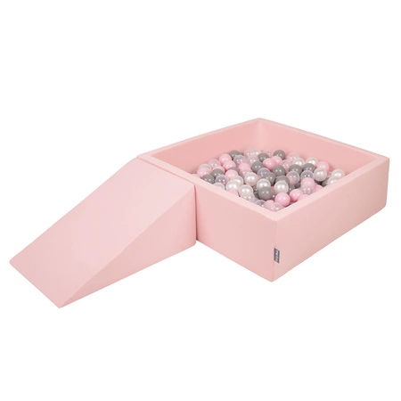 KiddyMoon Piankowy plac zabaw PPZP-KW30D-112 z piłeczkami Zabawka plac zabaw, różowy: perła-szary-transparent-pudrowy róż