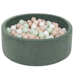KiddyMoon Suchy basen okrągły VELVET z piłeczkami 7cm Zabawka basen piankowy, zieleń lasu: pastelowy beż-biały-mięta