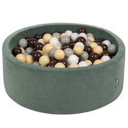 KiddyMoon Suchy basen okrągły VELVET z piłeczkami 7cm Zabawka basen piankowy, zieleń lasu: pastelowy beż-brązowy-biały