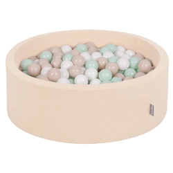 KiddyMoon Suchy basen okrągły z piłeczkami 7cm Zabawka basen piankowy, beżowy: pastelowy beż-biały-mięta