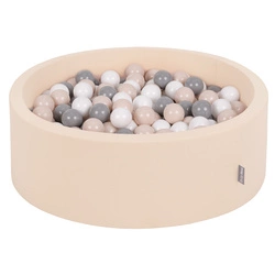KiddyMoon Suchy basen okrągły z piłeczkami 7cm Zabawka basen piankowy, beżowy: pastelowy beż-szary-biały