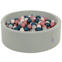 KiddyMoon Suchy basen okrągły z piłeczkami 7cm Zabawka basen piankowy, szałwiowy: ciemny turkus-pastelowy beż-zielonoszary-łososiowy