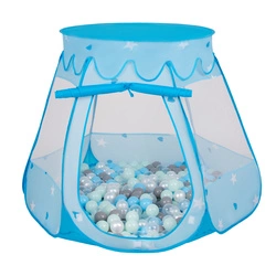 Namiot zamek NZ-100X z piłeczkami 6cm Zabawka namiot dla dzieci, niebieski: perła-szary-transparent-babyblue-mięta