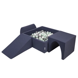 KiddyMoon Piankowy plac zabaw PPZP-KW30D-114 z piłeczkami Zabawka plac zabaw, granatowy: biały-szary-mięta