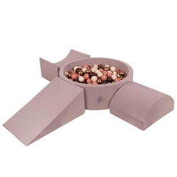 KiddyMoon Piankowy plac zabaw VELVET PPZP-OK30V-115 z piłeczkami Zabawka plac zabaw, beż piasku: pastelowy beż-pudrowy róż-perła-ciemny róż
