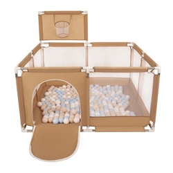 Boisko KK-100X z piłeczkami 6cm Zabawka kojec, beżowy: pastelowy beż-pastelowy niebieski-biały