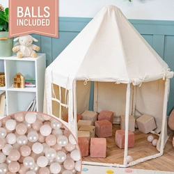 KiddyMoon Namiot dla dzieci NK-002 z piłeczkami 7cm Zabawka namiot dla dzieci, natural: pastelowy beż-biały-perła