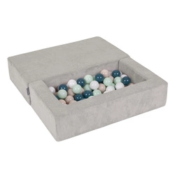 KiddyMoon Domek dla dzieci PH-002 z piłeczkami 7cm Zabawka namiot dla dzieci, white-grey: ciemny turkus-pastelowy beż-zielonoszary-łososiowy