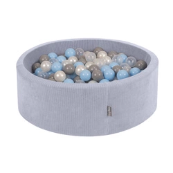 KiddyMoon Suchy basen okrągły STRIPES z piłeczkami 7 cm Zabawka basen piankowy, ciemnoszary: perła-szary-transparent-babyblue
