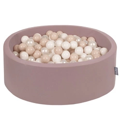 KiddyMoon Suchy basen okrągły z piłeczkami 7cm Zabawka basen piankowy, wrzosowy: pastelowy beż-biały-perła
