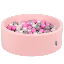 KiddyMoon Suchy basen okrągły z piłeczkami 7cm Zabawka basen piankowy, różowy: perła-szary-róż
