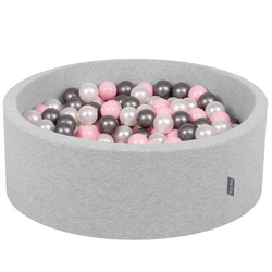 KiddyMoon Suchy basen okrągły z piłeczkami 7cm Zabawka basen piankowy, jasnoszary: perła-pudrowy róż-srebrny