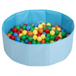 Suchy basen składany BS-100X z piłeczkami 6cm Zabawka basen tekstylny, niebieski: żółty-zielony-niebieski-czerwony-pomarańcz