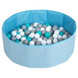 Suchy basen składany BS-100X z piłeczkami 6cm Zabawka basen tekstylny, niebieski: biały-szary-turkus