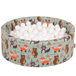 KiddyMoon Suchy basen okrągły z piłeczkami 7cm Zabawka basen piankowy, liski-zielony: biały