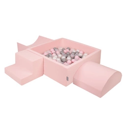 KiddyMoon Piankowy plac zabaw PPZP-KW30D-124 z piłeczkami Zabawka plac zabaw, różowy: biały-szary-pudrowy róż