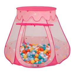 Namiot zamek NZ-100X z piłeczkami 6cm Zabawka namiot dla dzieci, różowy: biały-żółty-pomarańcz-babyblue-turkus