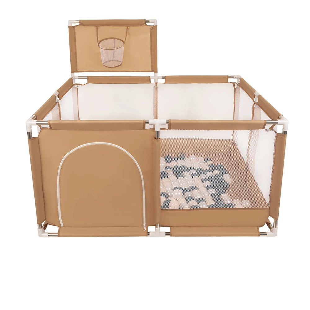 Składany kojec z plastikowymi piłkami w kształcie mini-boiska zapewni Twojemu dziecku godziny zabawy. Wewnątrz jest wystarczająco dużo przestrzeni, aby w zabawie mogło uczestniczyć swobodnie kilkoro dzieci. Jednocześnie kojec można w łatwy sposób złożyć, dzięki czemu można go schować, lub zabrać ze sobą na wczasy, piknik, czy do znajomych. Jedna ze ścianek jest wyposażona w siatkowy kosz do koszykówki umożliwiając małym dzieciom rywalizację w grze zespołowej.