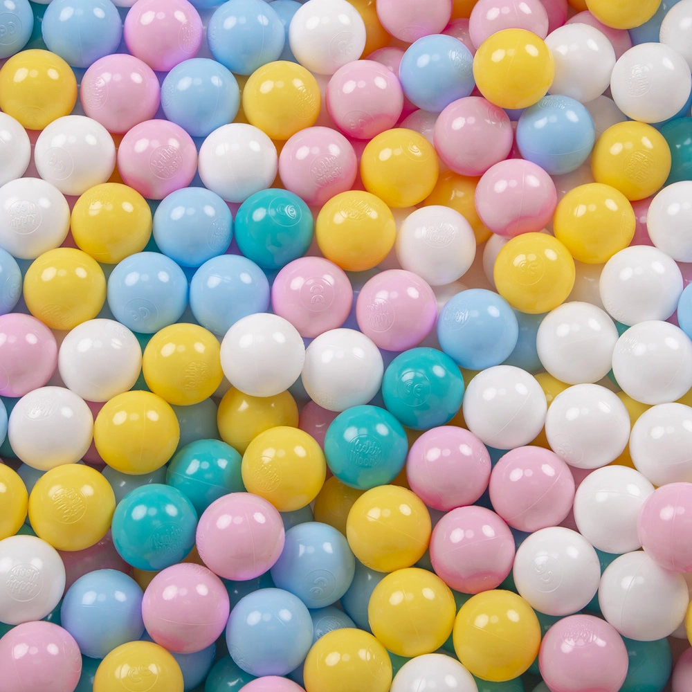 Produkt dostępny jest z piłeczkami o średnicy 6 cm - ogromny wybór kolorystyczny będzie doskonałym uzupełnieniem bajkowego namiotu dla dzieci. Piłeczki wyprodukowane są w Europie z nietoksycznego materiału. Posiadają certyfikat CE. Przyjemne i lekkie a zarazem elastyczne i odporne na zniekształcenia : po ściśnięciu odzyskują swój pierwotny kształt nie robiąc dziecku krzywdy.
