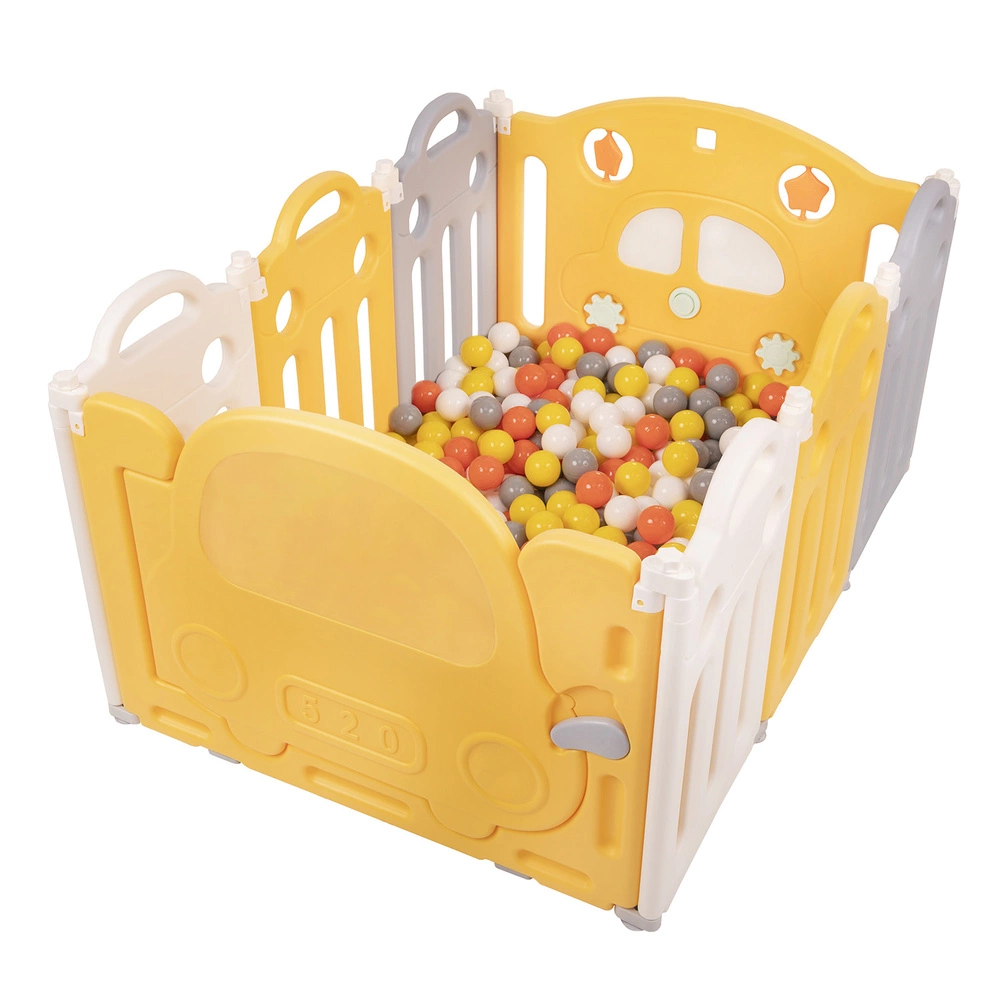 Kojec plastikowy KS-200X z piłeczkami Zabawka boks, biało-żółty: żółty-biały-szary-pomarańcz