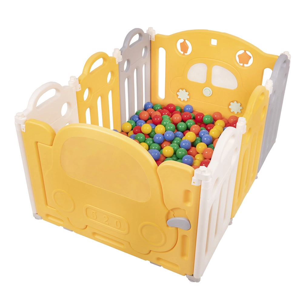 Kojec plastikowy KS-200X z piłeczkami Zabawka boks, biało-żółty: żółty-zielony-niebieski-czerwony-pomarańcz