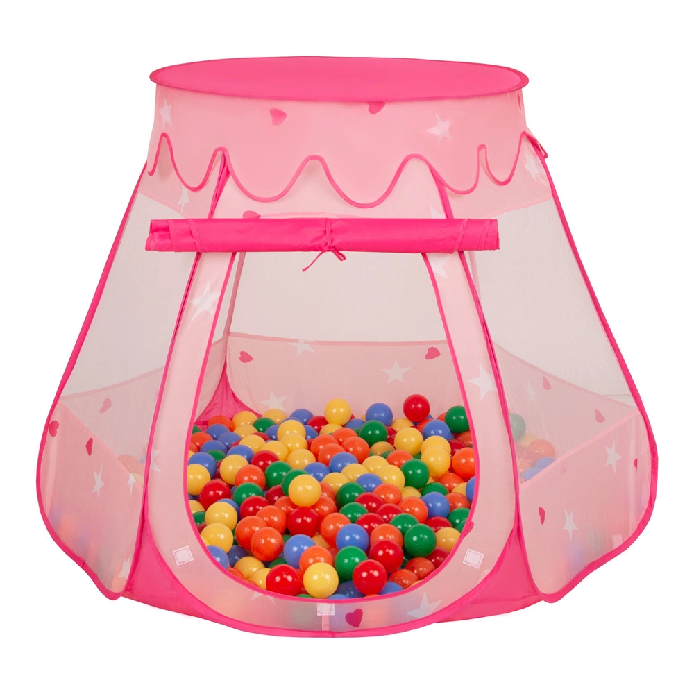 Namiot zamek NZ-100X z piłeczkami 6cm Zabawka namiot dla dzieci, różowy: żółty-zielony-niebieski-czerwony-pomarańcz