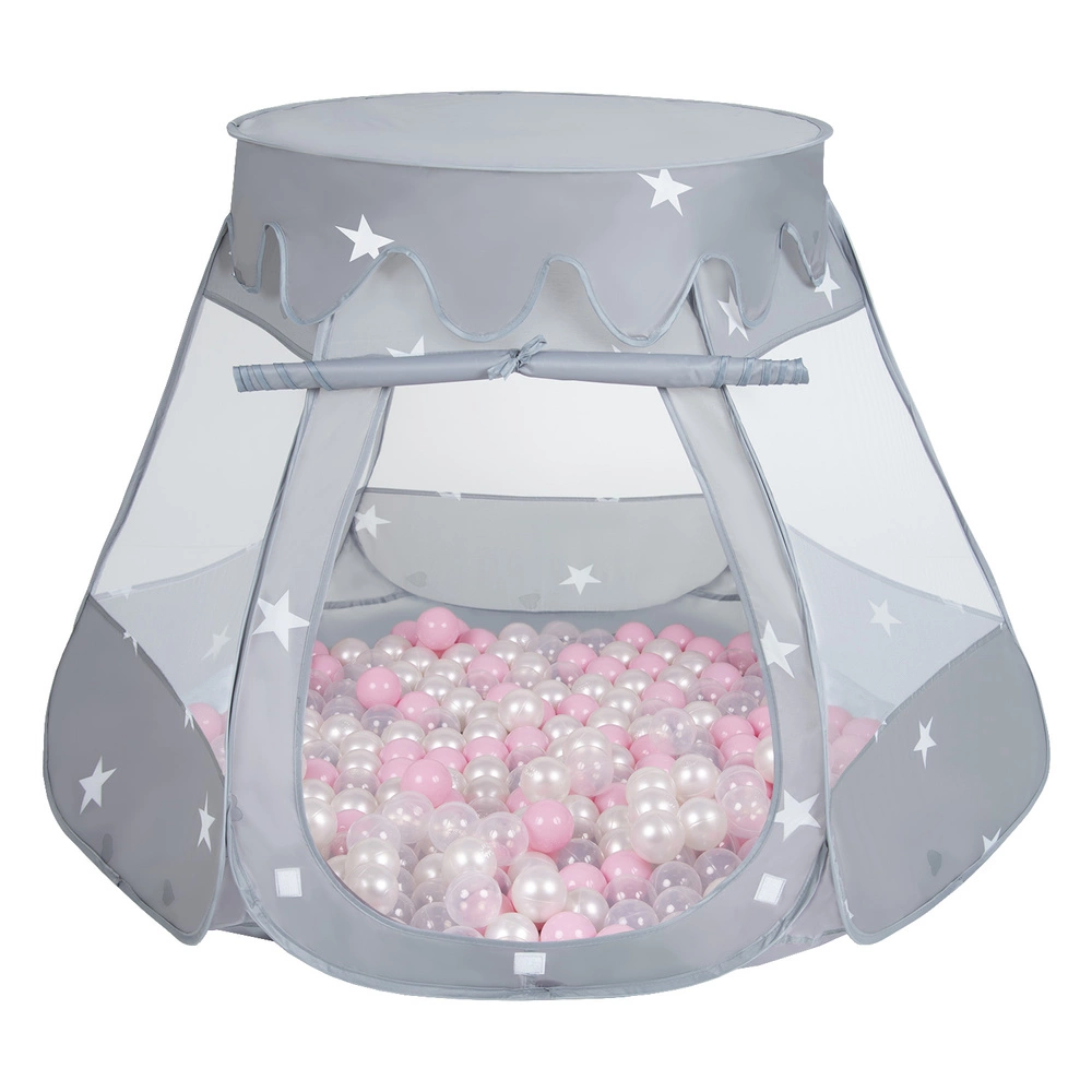 Namiot zamek NZ-100X z piłeczkami 6cm Zabawka namiot dla dzieci, szary: pudrowy róż-perła-transparent